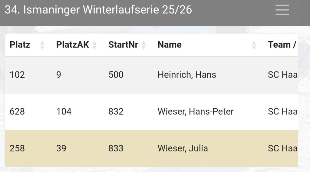 Zeitgleich waren drei Haager bei der Ismaninger Winterlaufserie zu Gange.